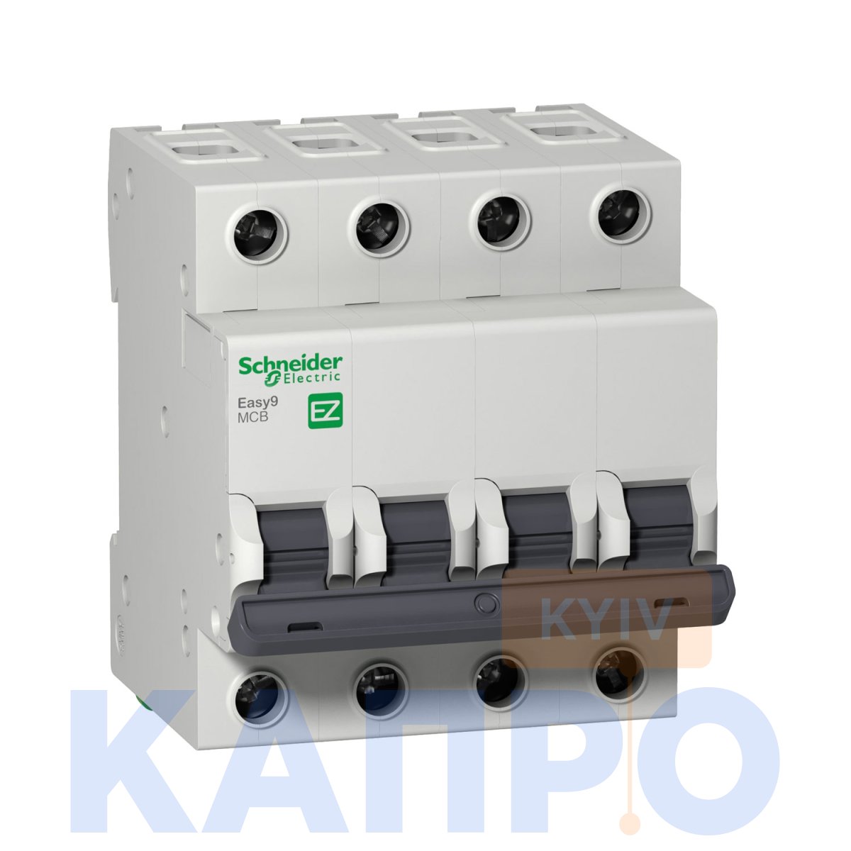 – Тип: Автоматичний вимикач 4Р, 32А, х-ка. "C" EZ9 Schneider ElectricАвтомати захищають ланцюги від струмів короткого замикання, мають індикацію аварійного відключення на передній панелі за допомогою положення руків'я. Мають електричну зносостійкість в 4000 циклів і механічну в 10 000 циклів.
