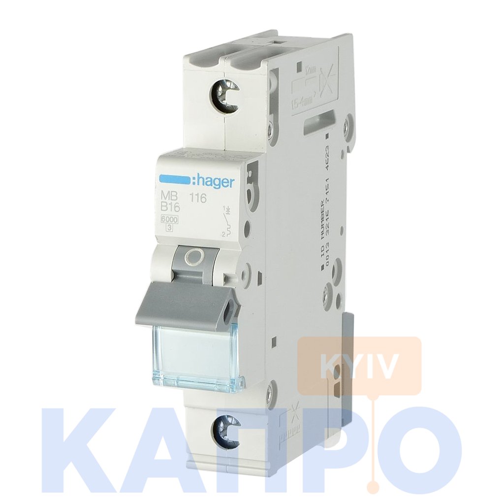 Автоматичний вимикач Hager MB113 (Хагер) призначений для захисту від струмів короткого замикання і теплового навантаження в мережах змінного струму.
