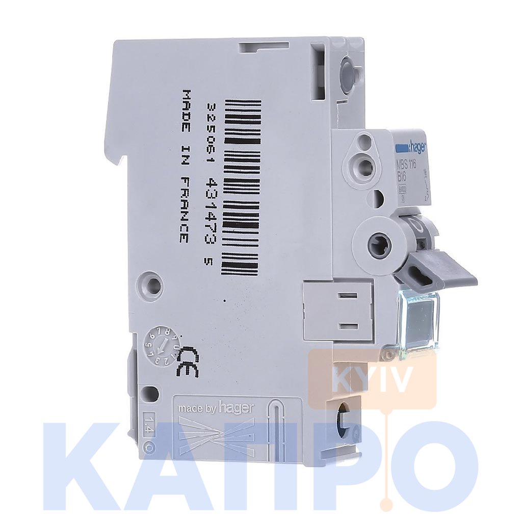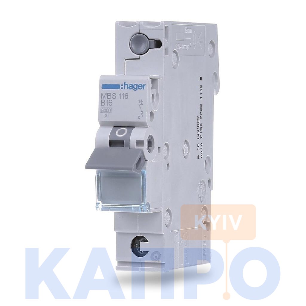 Призначення: Автоматичний вимикач Hager MBS116 оснащений технологією швидкого затиску провідників і автоматичного затиску з'єднувальної шини Quick Connect і призначені для захисту кабелів і електричних ланцюгів від теплового перевантаження і струмів короткого замикання.