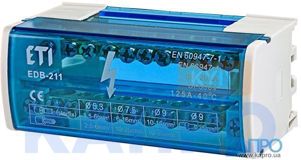 Блок розподільна клемний ETI EDB-211 2p 125A (11 виходів) 1102301