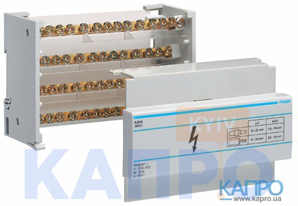 Блок розподільний клемний 125A Hager KJ01C (вхід 1*35, вихід 1*25+10*16)