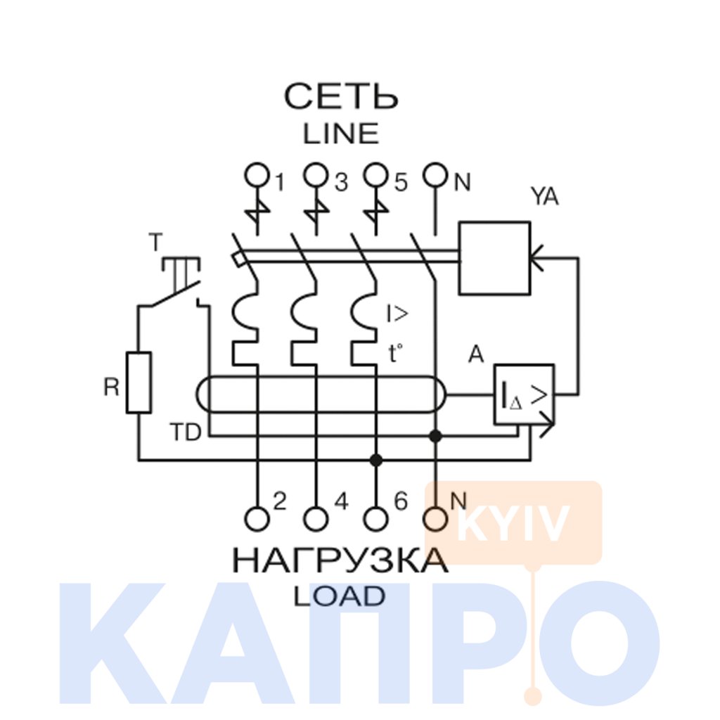 Автоматичний вимикач диференційного струму АВДТ34 для захисту людини від ураження електричним струмом при пошкодженні ізоляції електроустановок, для запобігання пожежам і захисту від перевантаження і короткого замикання в мережах змінного струму напругою 400 В і частотою 50 Гц.