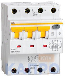 Автоматичний вимикач диференційного струму АВДТ34 для захисту людини від ураження електричним струмом при пошкодженні ізоляції електроустановок, для запобігання пожежам і захисту від перевантаження і короткого замикання в мережах змінного струму напругою 400 В і частотою 50 Гц.