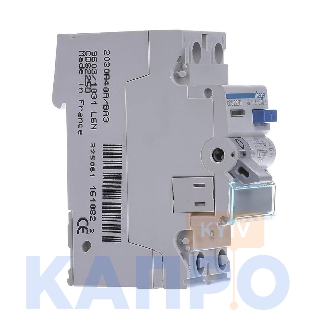 Вимикач диференціального струму 2-полюсний CDS263D (однофазний) з технологією кріплення провідників Quick Connect.