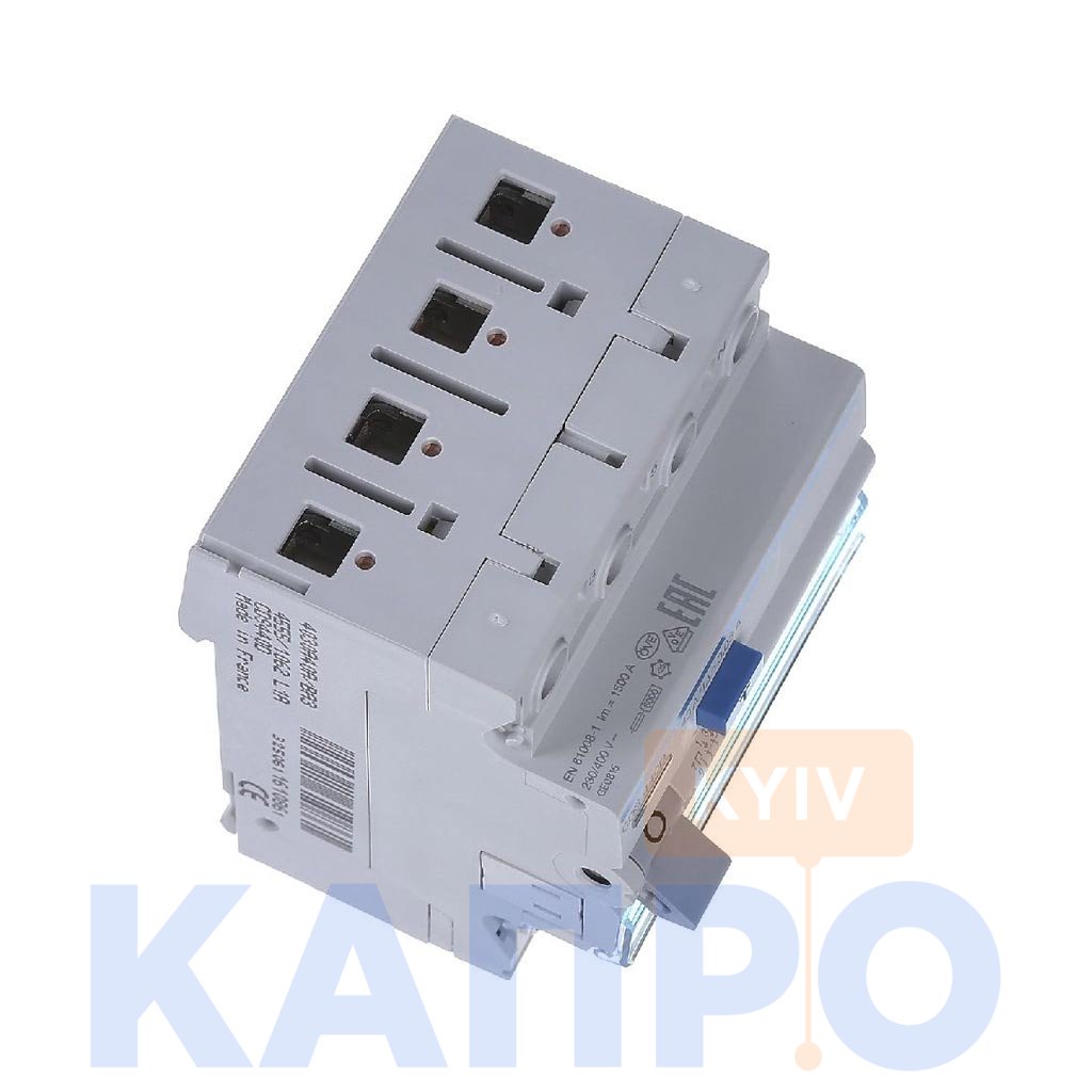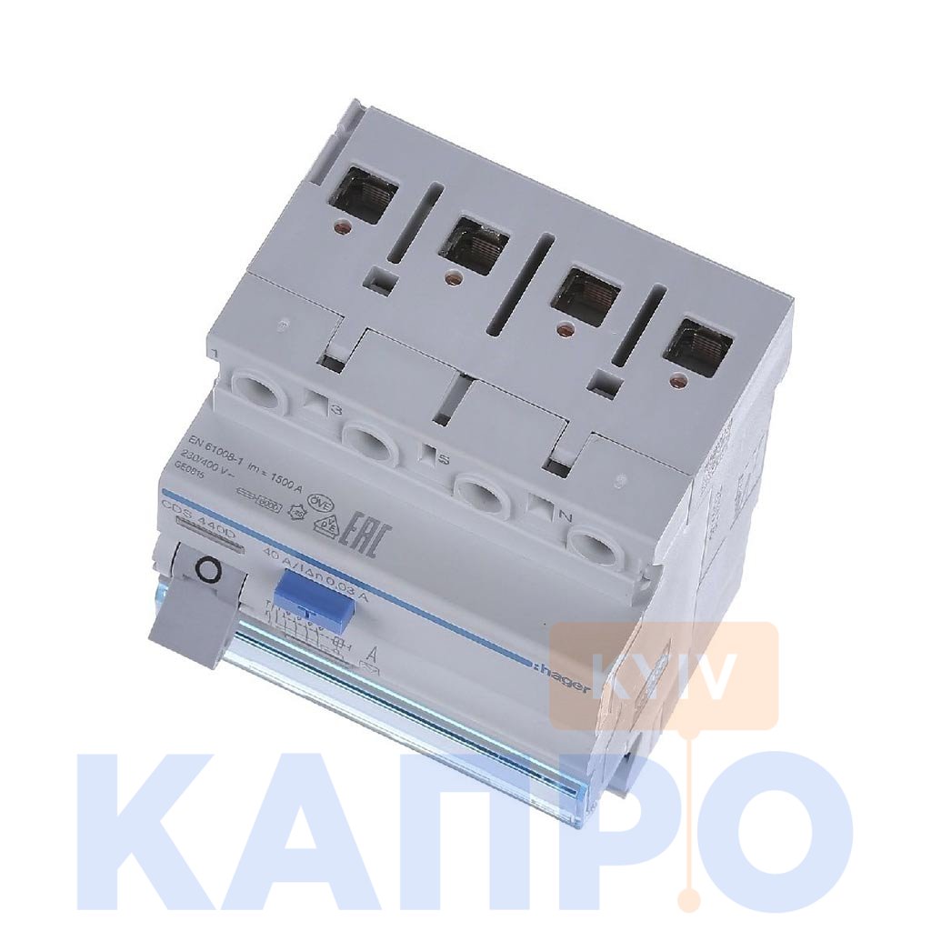 Вимикач диференціального струму 4-полюсний CDS425D (трифазний) з технологією кріплення провідників Quick Connect.