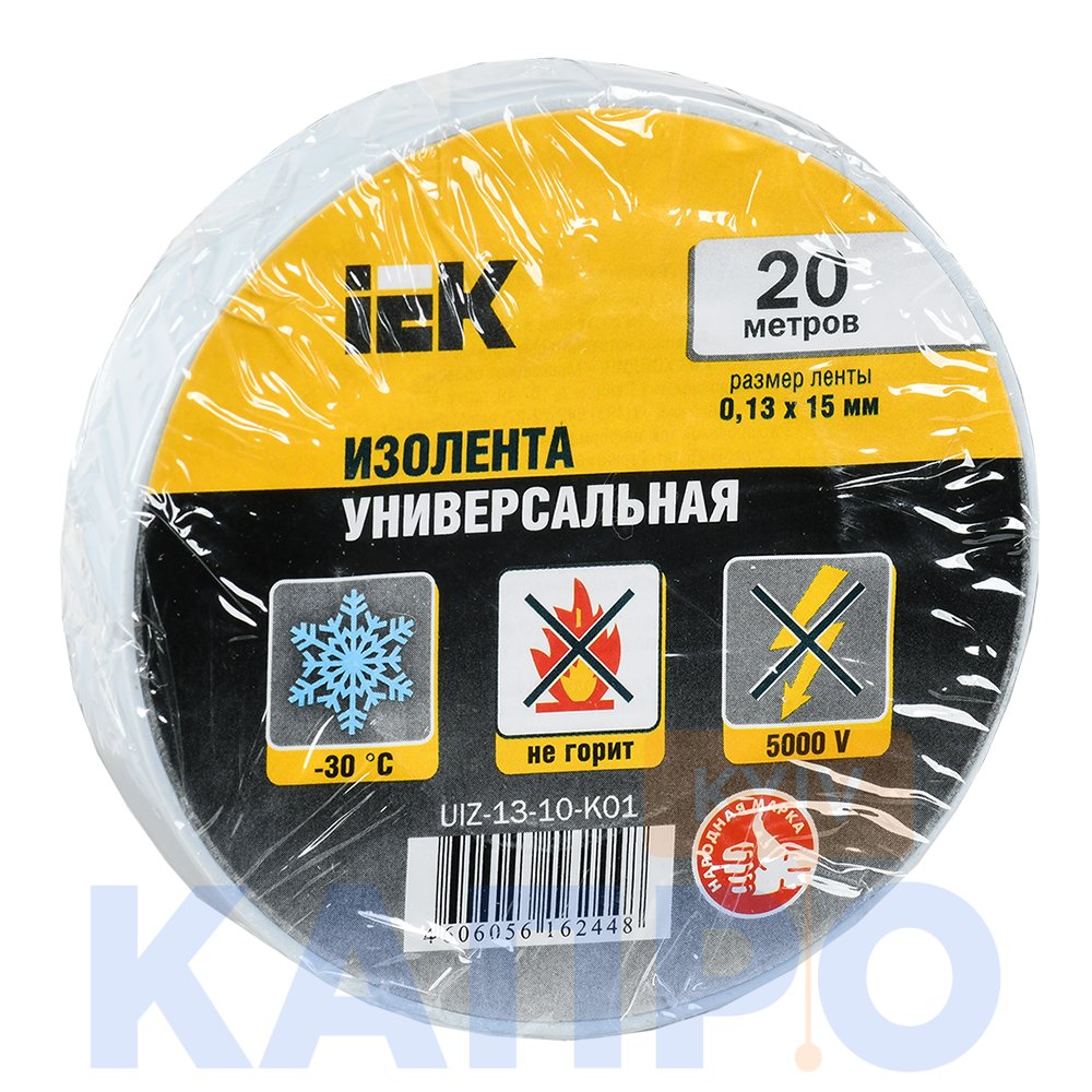 Ізоляційна стрічка від IEK на 20 м випускається в білому кольорі, призначена для промислових й будівельних робіт, електроізоляції. Виготовлена на основі полівінілхлориду.