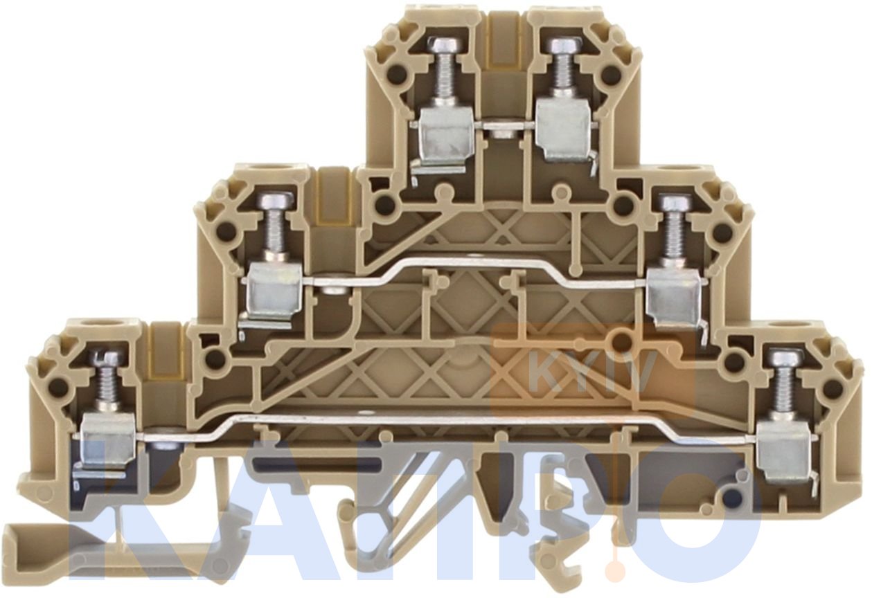 Трирівнева клема IKD 2.5 з гвинтовим з'єднанням для монтажу на дин-рейку.