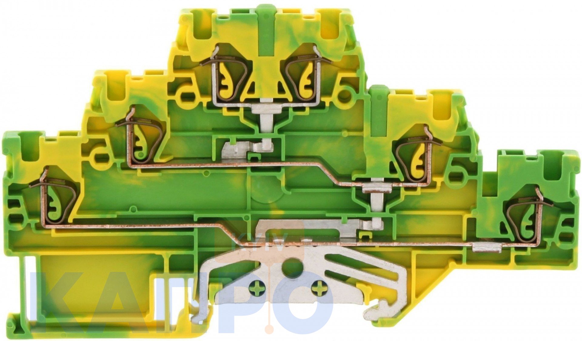 Трирівнева клема заземляюча ZIKD 2.5 з пружинною системою з'єднання для монтажу на дин-рейку.