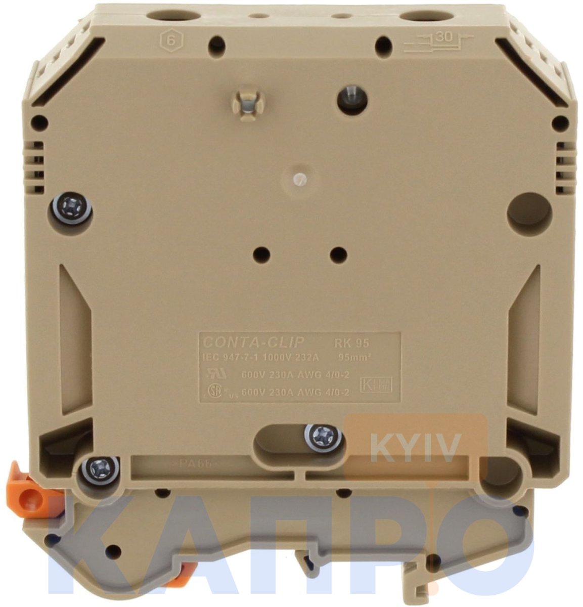 Клема монтажна RK виробництва Conta-Clip для встановлення у щит на din-рейку розміром 32/35 мм.