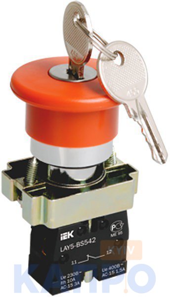 Кнопка-грибок d22 1з+1о іЕК LAY5-BS142 червон BBG50-LAY5-K04