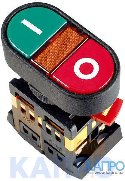 Кнопка здвоєна I-O d22 неон/240V 1з+1о іЕК APBB-22N червон+зел BBD10-APBB-K51