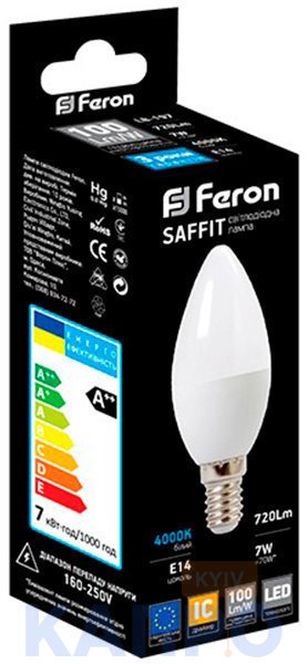 Лампа свічка LED E14 Feron 30000h SAFFIT 700Lm 7,0W/2700 C37 LB-197