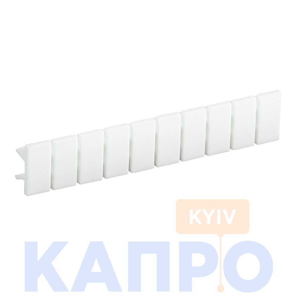 ОписМаркувальні пластини (маркери) з перетином 4 мм² використовуються для маркування рядів клемних збірок пружинного типу (клеми КПІ) в системах розподілу. Встановлюються у відповідні пази клеми. На маркери також може наноситися позначення, наприклад, нумерація № 1-10 або символи "L1, L2, L3, N, PE". Технічні характеристикиКолір: Білий