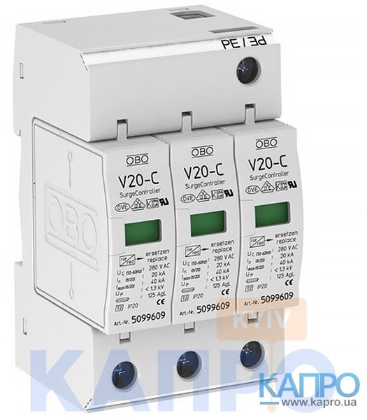 Обмежувач перенапруг 3-280V V20-С Тип ІІ Obo Bettermann 5094624