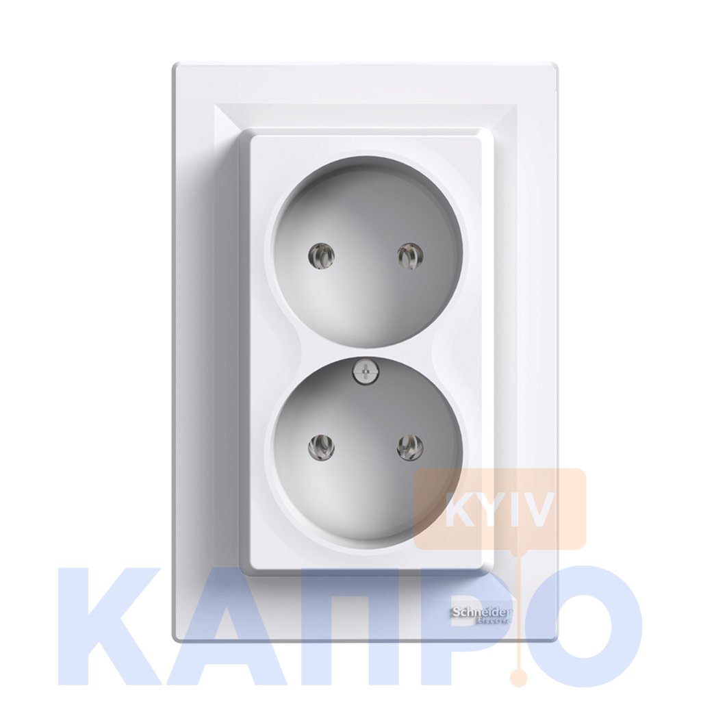 Подвійна електрична розетка без заземлюючого контакту з серії Asfora (Schneider Electric) призначена для внутрішньої установки в монтажну коробку.