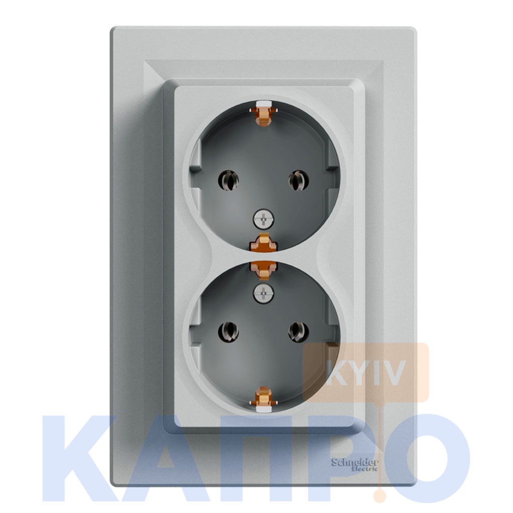 Подвійна електрична розетка з заземлюючим контактом з серії Asfora (Schneider Electric) призначена для внутрішньої установки в монтажну коробку.
