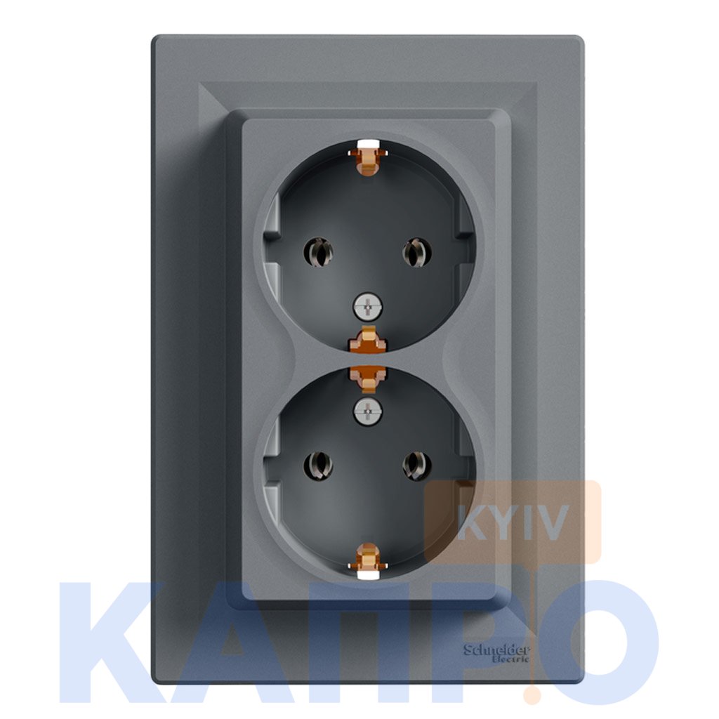 Подвійна електрична розетка з заземлюючим контактом з серії Asfora (Schneider Electric) призначена для внутрішньої установки в монтажну коробку.