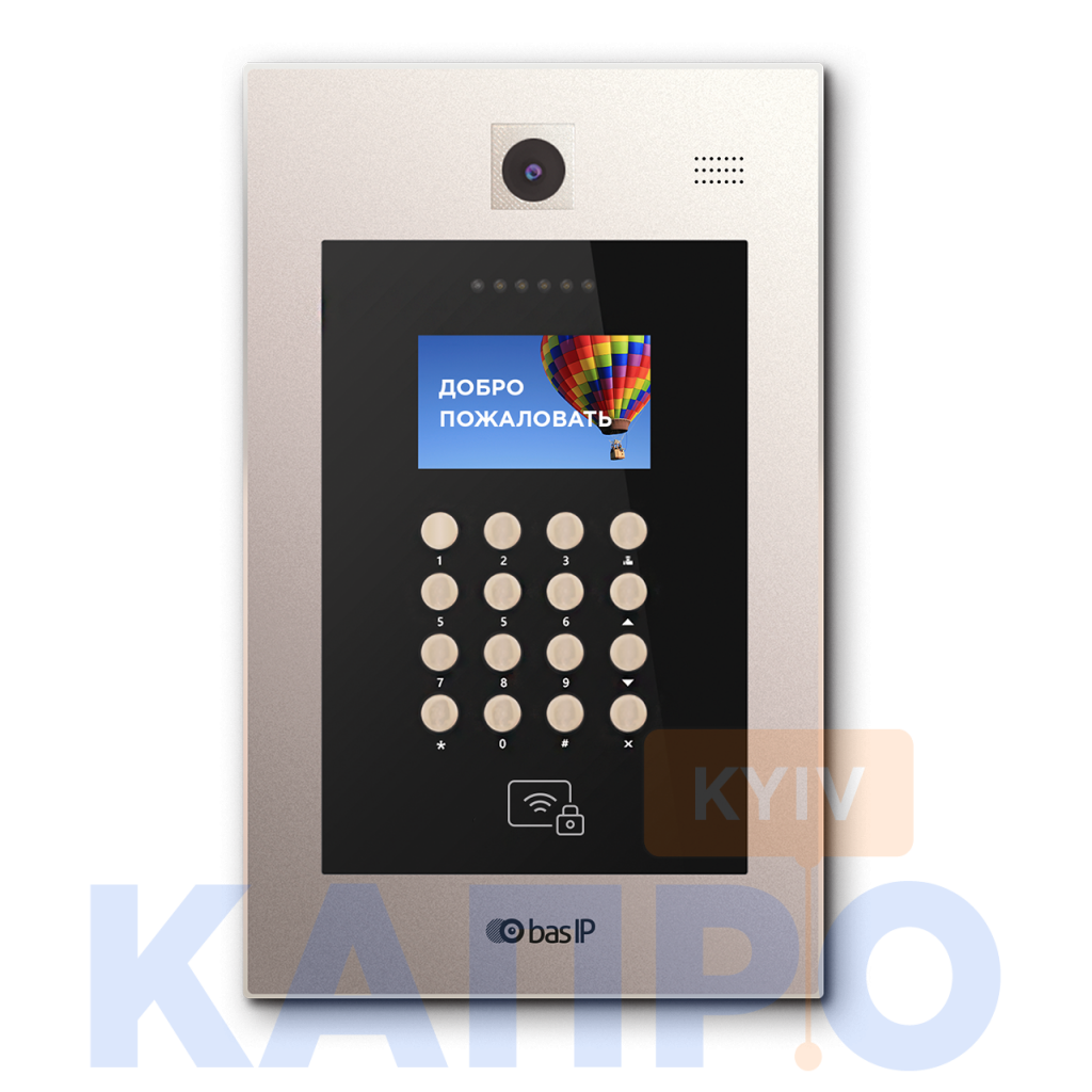 - Функції: Підключення дод.відеокамери, Підключення дод.панелі, Підключення дод.моніторів, Вбудована камера, Вбудований зчитувач безконтактних карт