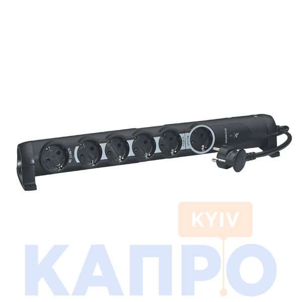 Подовжувач Legrand 6x2к+З 1,5м М/Р, "Комфорт і безпека", чорний