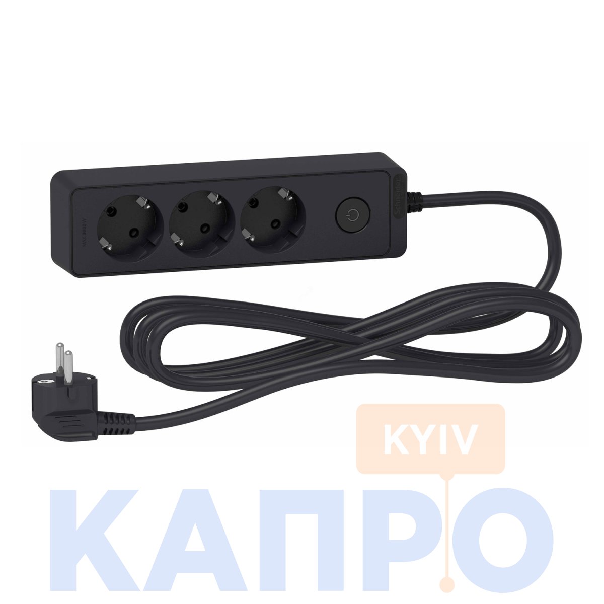 – Тип: Подовжувач UNICA EXTEND на 3 розетки з заземленням, 1.5 м, чорний