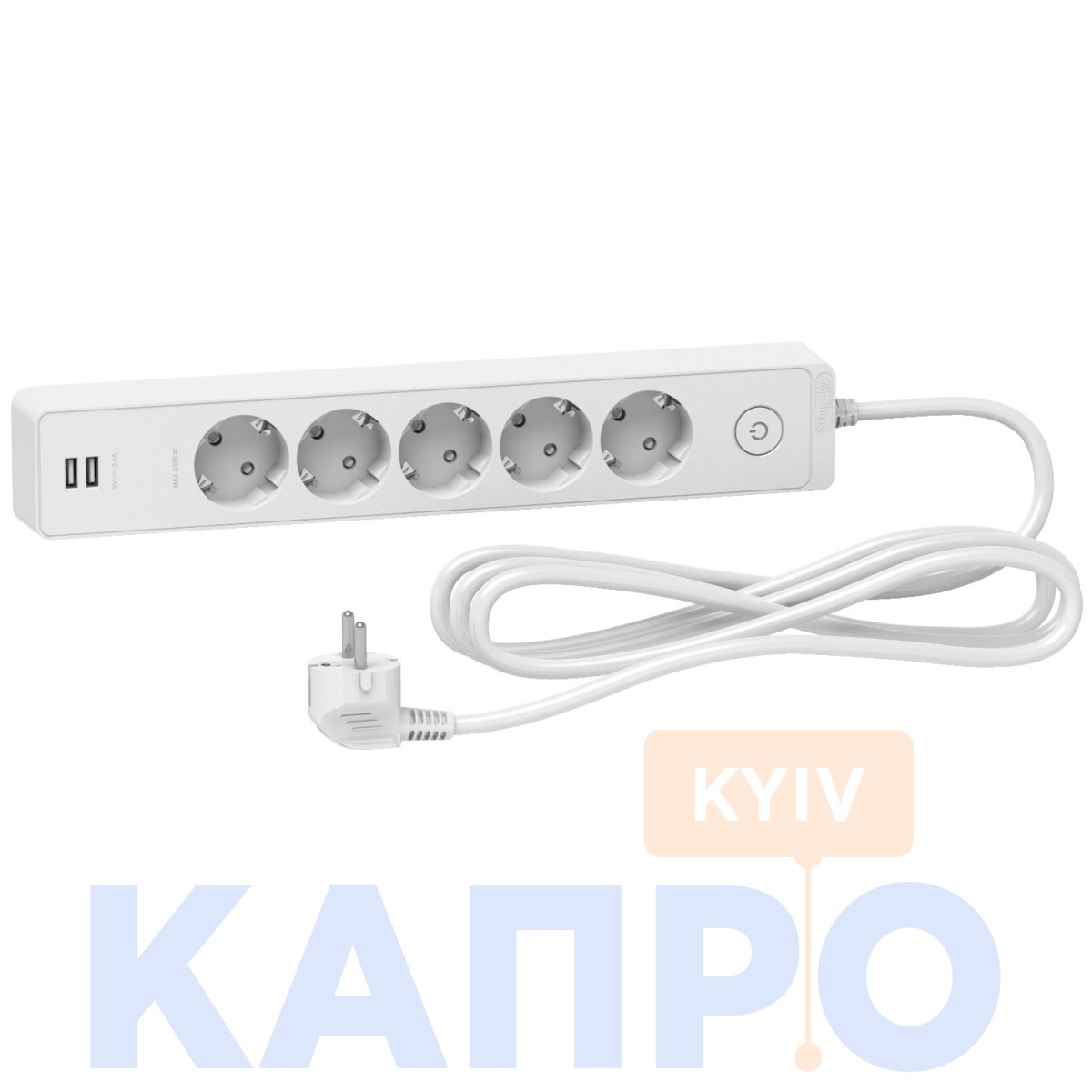 – Тип: Подовжувач UNICA EXTEND на 5 розеток з заземленням+2*USB-розетки, 3м, білий