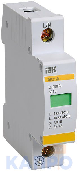 Розрядник перенапруги 220V іЕК ОПС1-D 1p In=5кА, Im=10kA MOP20-1-D