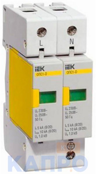 Розрядник перенапруги 400V іЕК ОПС1-C 2p In=20кА, Im=40kA MOP20-2-C