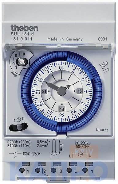 Реле часу е/мех.добов.15хв.резерв 200ч 3мод.Theben SUL181d 1810011 (1*16А AC1) кварц.генер.
