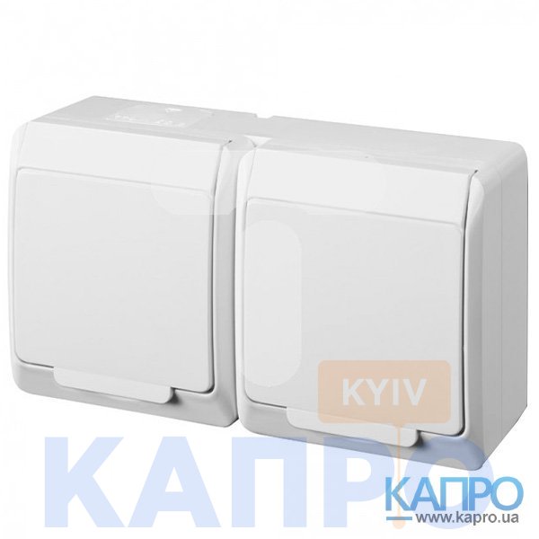 Розетка з заземл.контактом з кришкою 2-я 16А IP44 Elektro-Plast Hermes 0325-02 біл