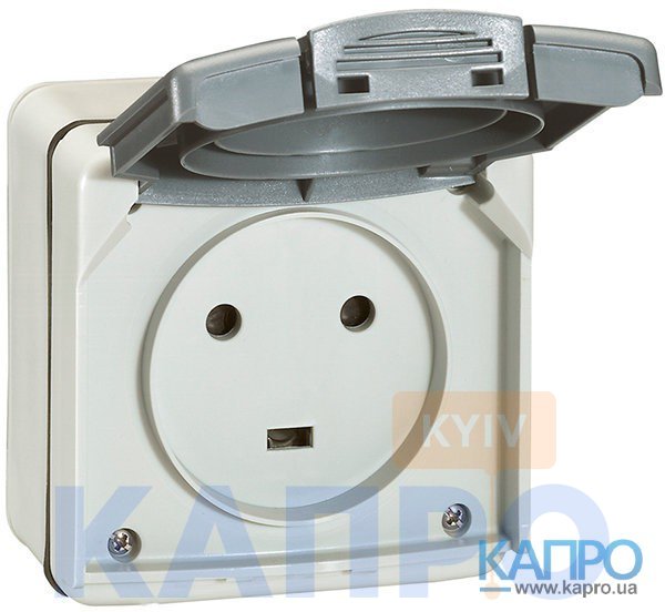 • Розетка з заземл.контактом з кришкою зовніш. 20А IP55 Plexo 91655 сір