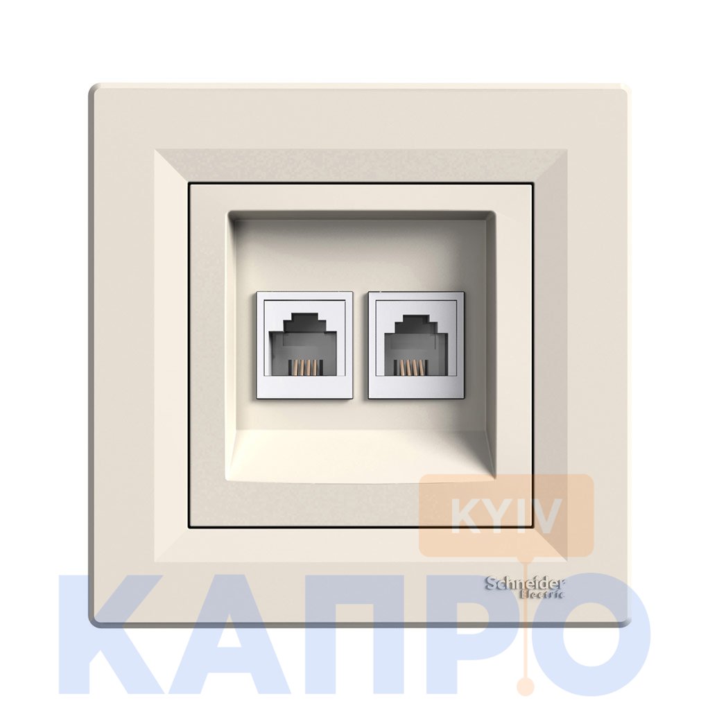 • Розетка телефон. 2-а. RJ-11 Schneider Asfora EPH4200123 (крем)