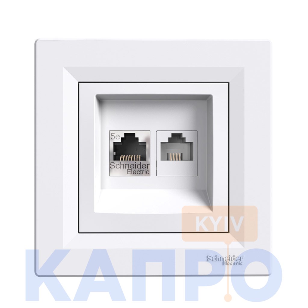• Розетка комп'ют. +телефон. RJ-45 UTP+RJ-12 Schneider Asfora EPH4900121 білий