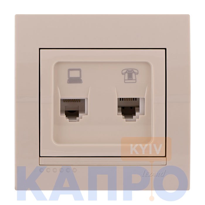 Розетка телефон.RJ11+компьют.RJ45 Кат.5е Lezard Deriy 702-0303-143 сл.кістка