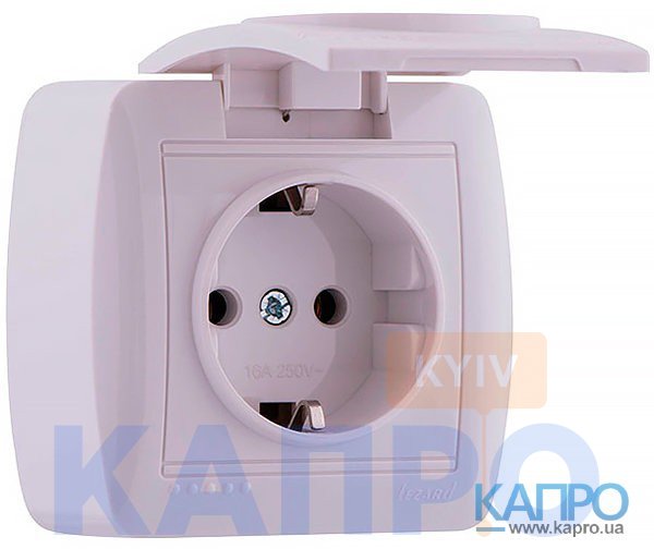 - Розетка з заземл.контактом з кришкою 16А Lezard Demet 711-0200-123 біл