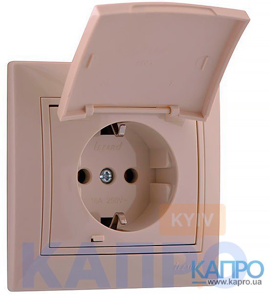 Розетка з заземл.контактом з кришкою 16А Lezard Mira 701-0303-123B крем