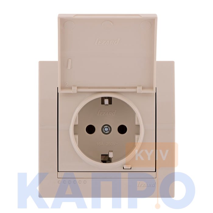 - Розетка з заземл.контактом з кришкою 16А Lezard Deriy 702-0303-123 сл.кістка