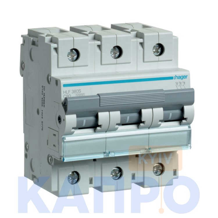 Автоматический выключатель 3-п Hager HLF380S 10kA C-80A 4.5мод.