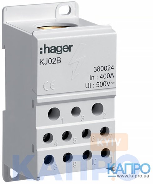 - Блок распределительный клеммный 400A Hager KJ02B (вход 1*150, выход 2*25*16+4*10)