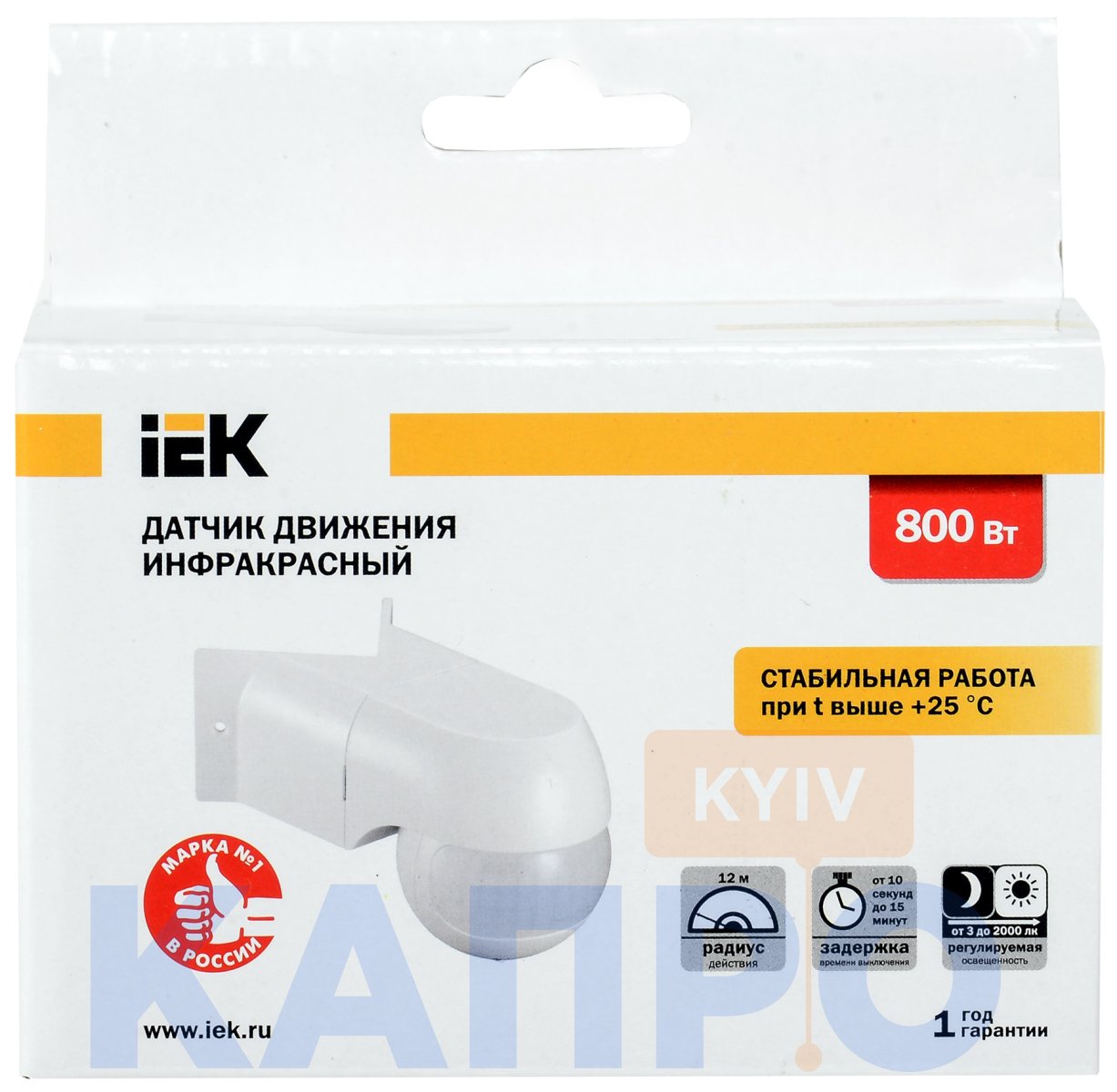 – Тип: Датчик движения ДД 016 белый, 800Вт, 180°, 12м, IP44 IEK