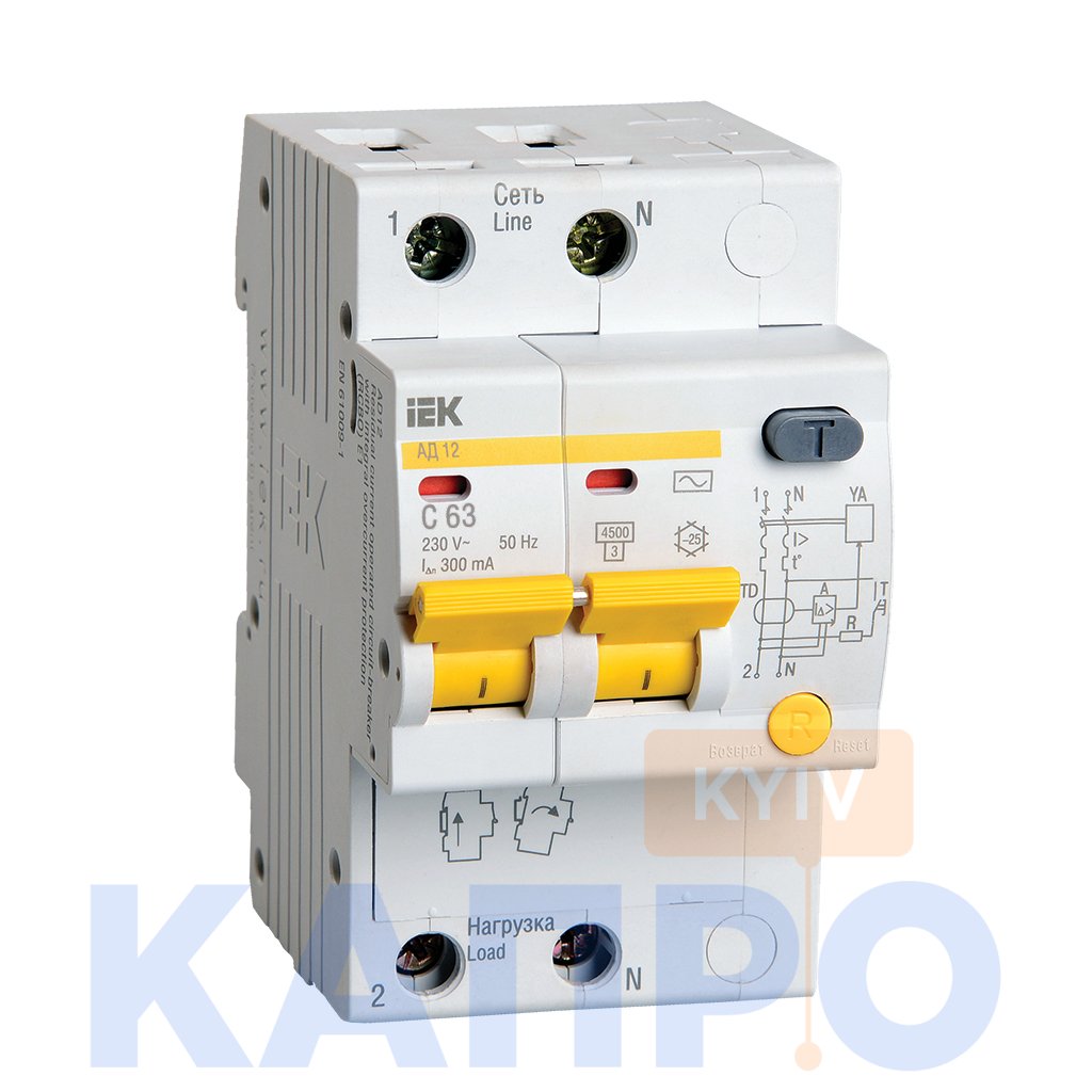 Диф.автомат 2-п ИЭК АД 12 C 63/0,3А MAD10-2-063-C-300