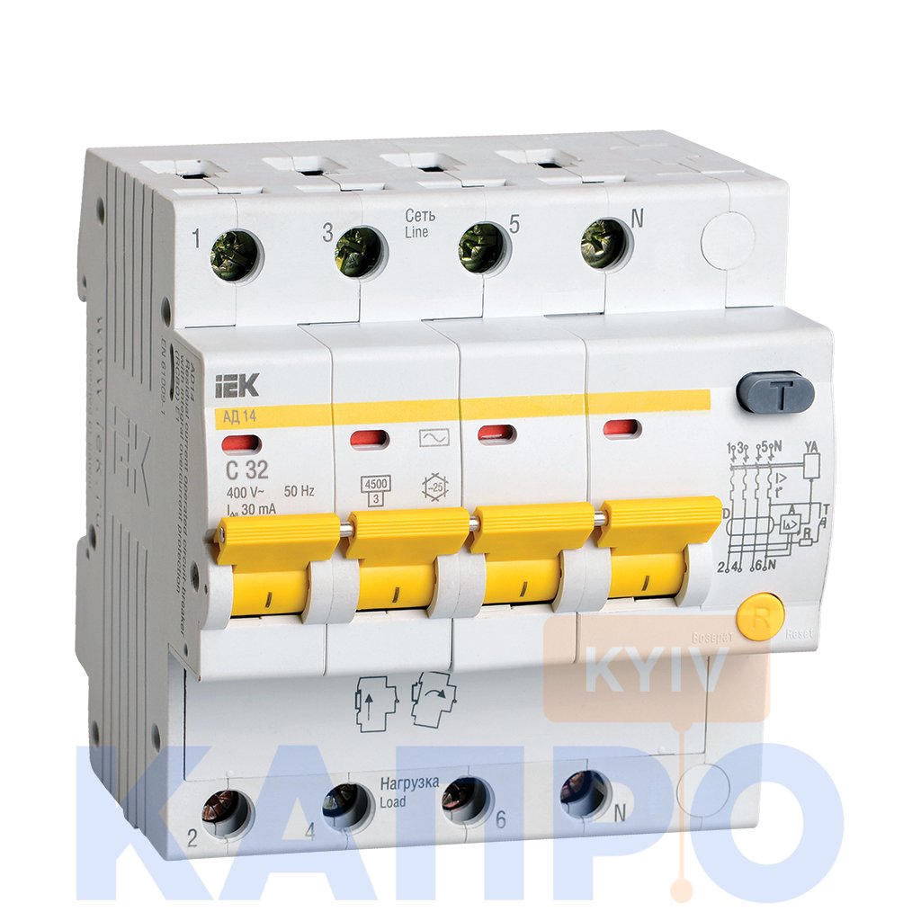 Диф.автомат 4-п ИЭК АД 14 C 32/0,03А MAD10-4-032-C-030