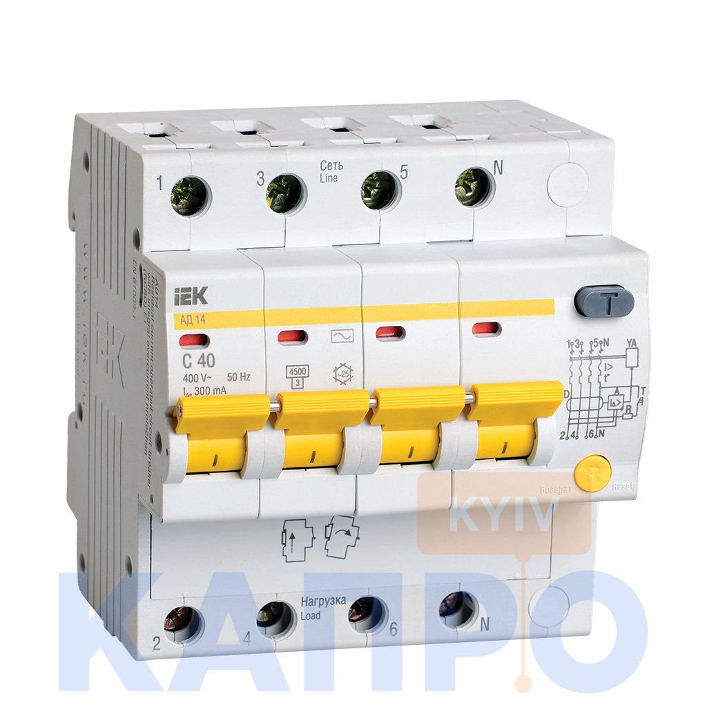 Диф.автомат 4-п ИЭК АД 14 C 40/0,3А MAD10-4-040-C-300
