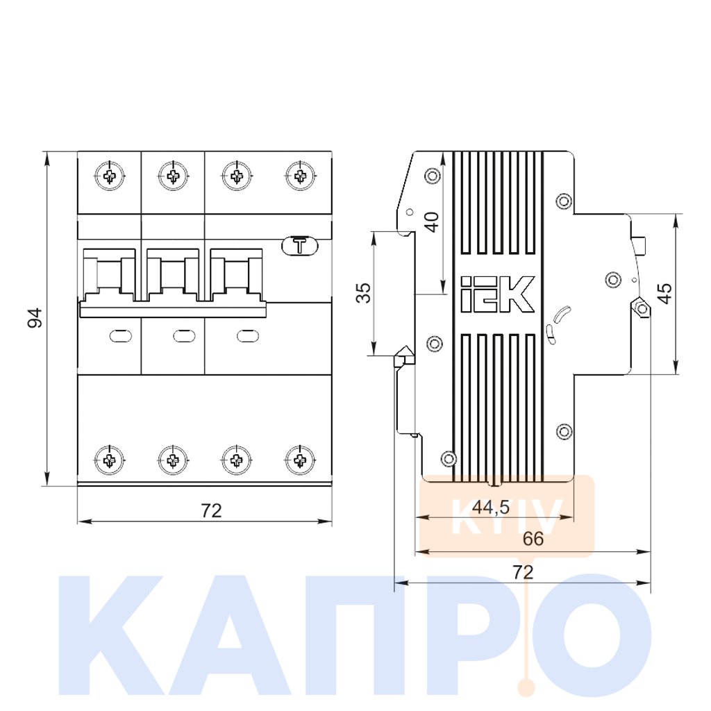 Автоматический выключатель дифференциального тока АВДТ34 для защиты человека от поражения электрическим током при повреждении изоляции электроустановок, для предотвращения пожаров и защиты от перегрузки и короткого замыкания в сетях переменного тока напряжением 400 В и частотой 50 Гц.