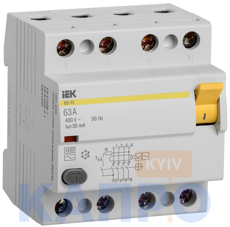 Диф.реле 4-п ИЭК тип AC 3kA ВД 1-63 63/0,03А MDV10-4-063-030