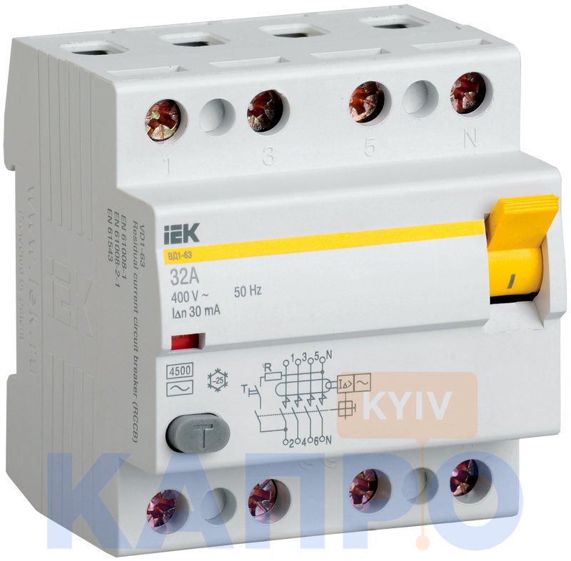 Диф.реле 4-п ИЭК тип AC 3kA ВД 1-63 50/0,3А MDV10-4-050-300
