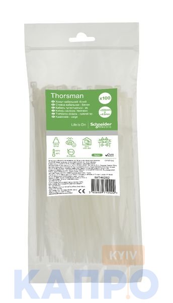 Кабельные хомуты Thorsman изготовлены из УФ устойчивого черного полиамида, применяемые как в помещении, так и на улице, а из белого полиамида – только в помещениях.