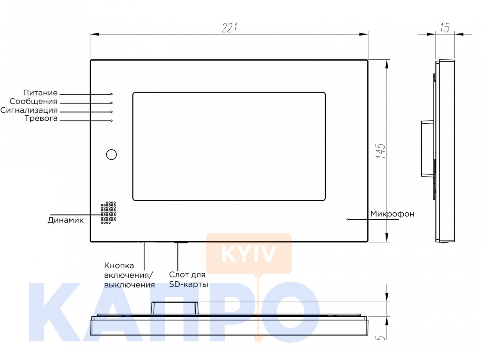 - Функции: Автоответчик, Подключение доп.видеокамеры, Подключение доп.видеокамеры, Подключение доп.мониторов, Режим «фоторамка»