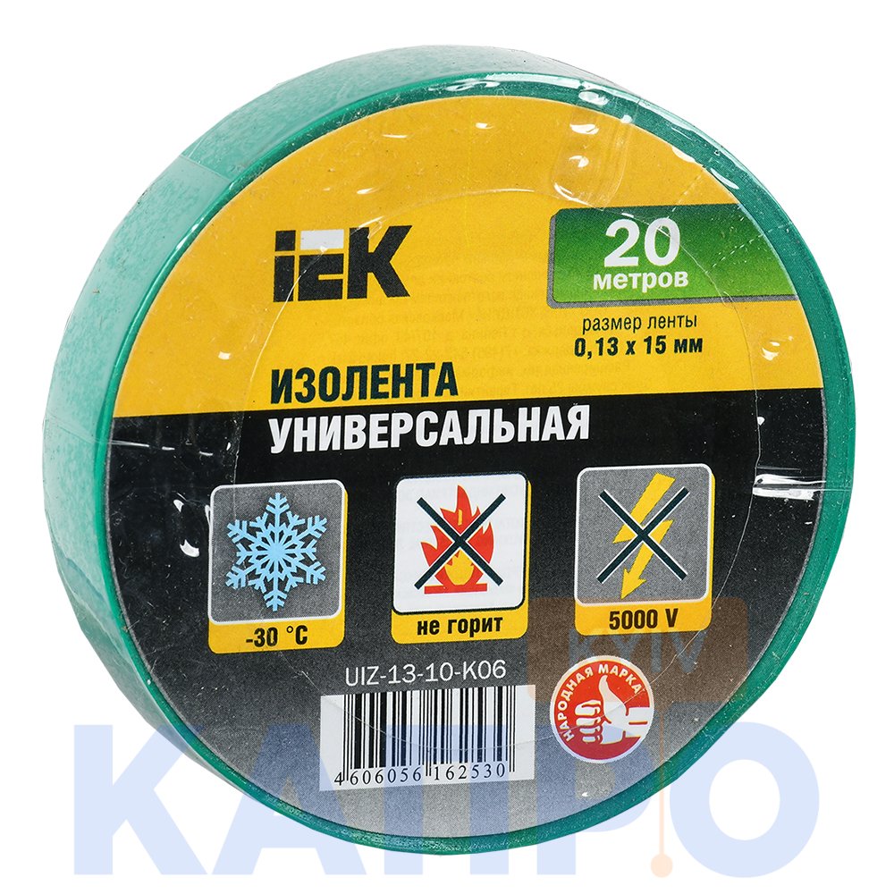 - Изолента 0,13х15 мм зеленая 20 метров ИЭК UIZ-13-10-K06