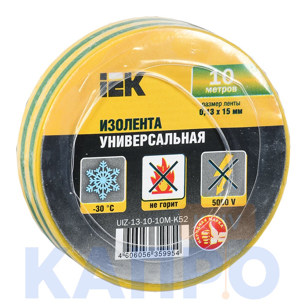 - Изолента 0,13х15 мм желто-зеленая 10 метров ИЭК UIZ-13-10-10M-K52