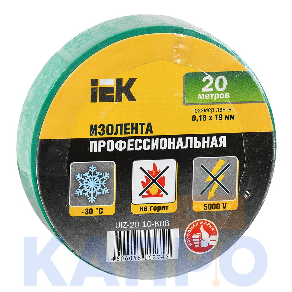 - Изолента 0,18х19 мм зеленая 20 метров ИЭК UIZ-20-10-K06
